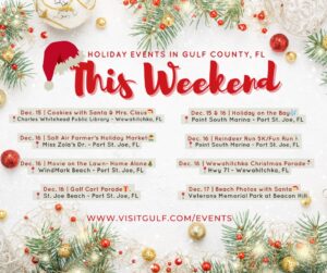 Holiday Events – Gulf County Posted on December 15, 2023December 15, 2023 by Felicia Hall “Wondering what to do this weekend in #GulfCountyFL? Check out the exciting lineup for this weekend – there’s bound to be a fun and festive activity for everyone!” -Gulf County Florida Tourism